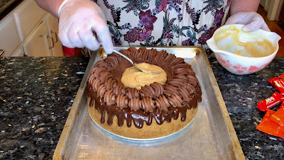Once the ganache, is at room temperature, and slightly thickens, it makes the perfect drip border, on a cake.